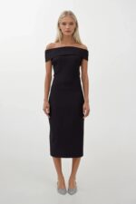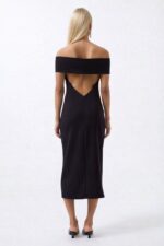 Omuz Katlama Detay Maxi Siyah Elbise