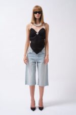 Xhepi i ngarkesave i detajuar, poshtë gjurit, bel i lartë, Bermuda, pantallona të shkurtra xhins Dimensionet e modelit: Gjoks: 89