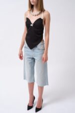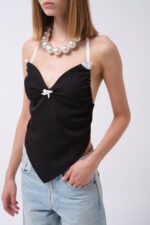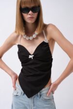 Askılı Dokulu Dekolte Siyah Bluz