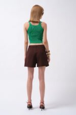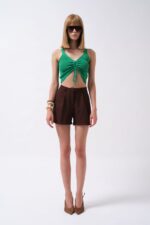 Bluza Crop Top me pala përpara, me lidhëse, me rripa të trashë, jakë V dhe detaje tuneli.