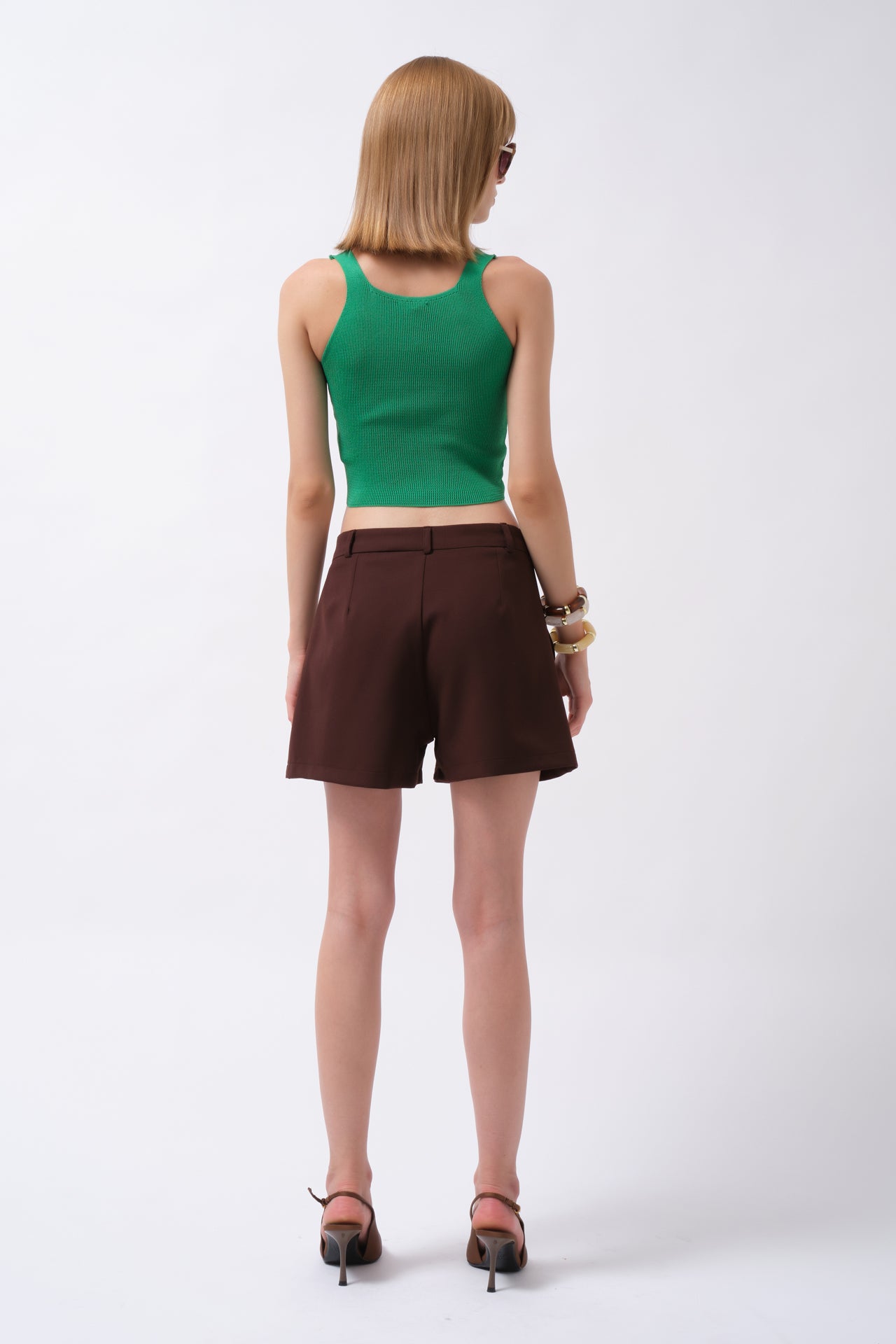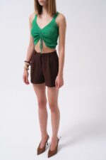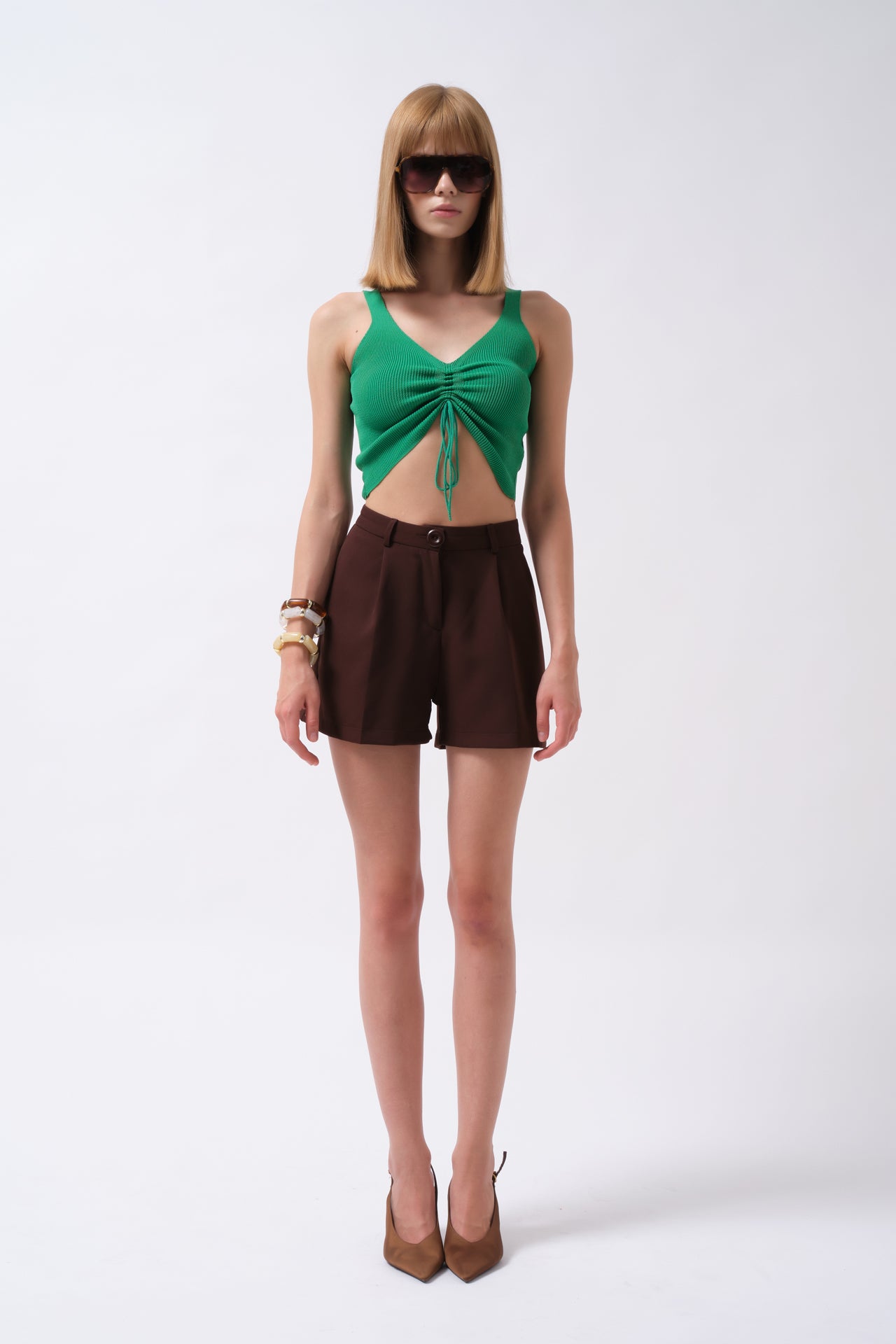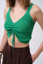 Bluza Crop e Gjelbër me Rrudha Përpara