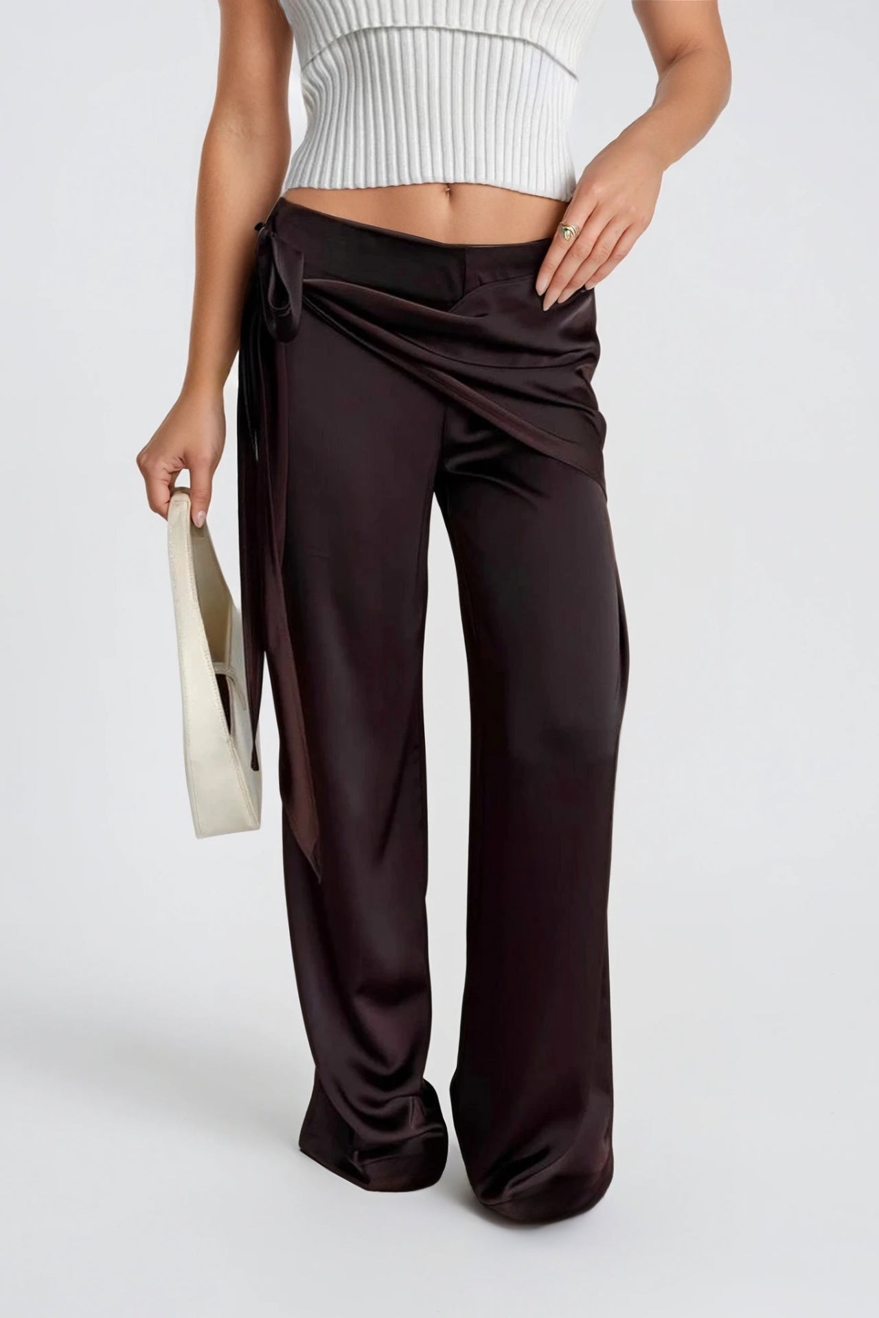 Anvelop Kapamalı, Yandan Gizli Fermuarlı, Saten Dokuma Pantolon Manken Ölçüleri : Göğüs : 80 cm Bel : 61 cm Basen : 90 cm Manken Boy : 176 cm Kilo : 53 kg Manken üzerindeki S bedendir. Ürün İçeriği : 100 Polyester Ürün Kodu : 24S01022