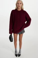Örgü Desen Bordo Basic Triko Kazak