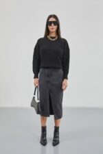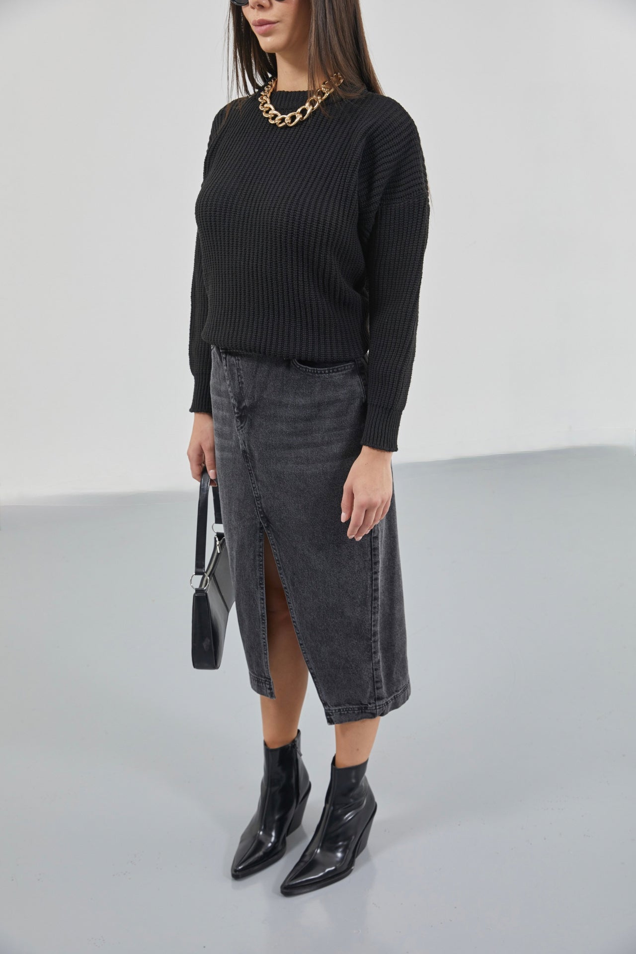 Oversize Siyah Örgü Kazak