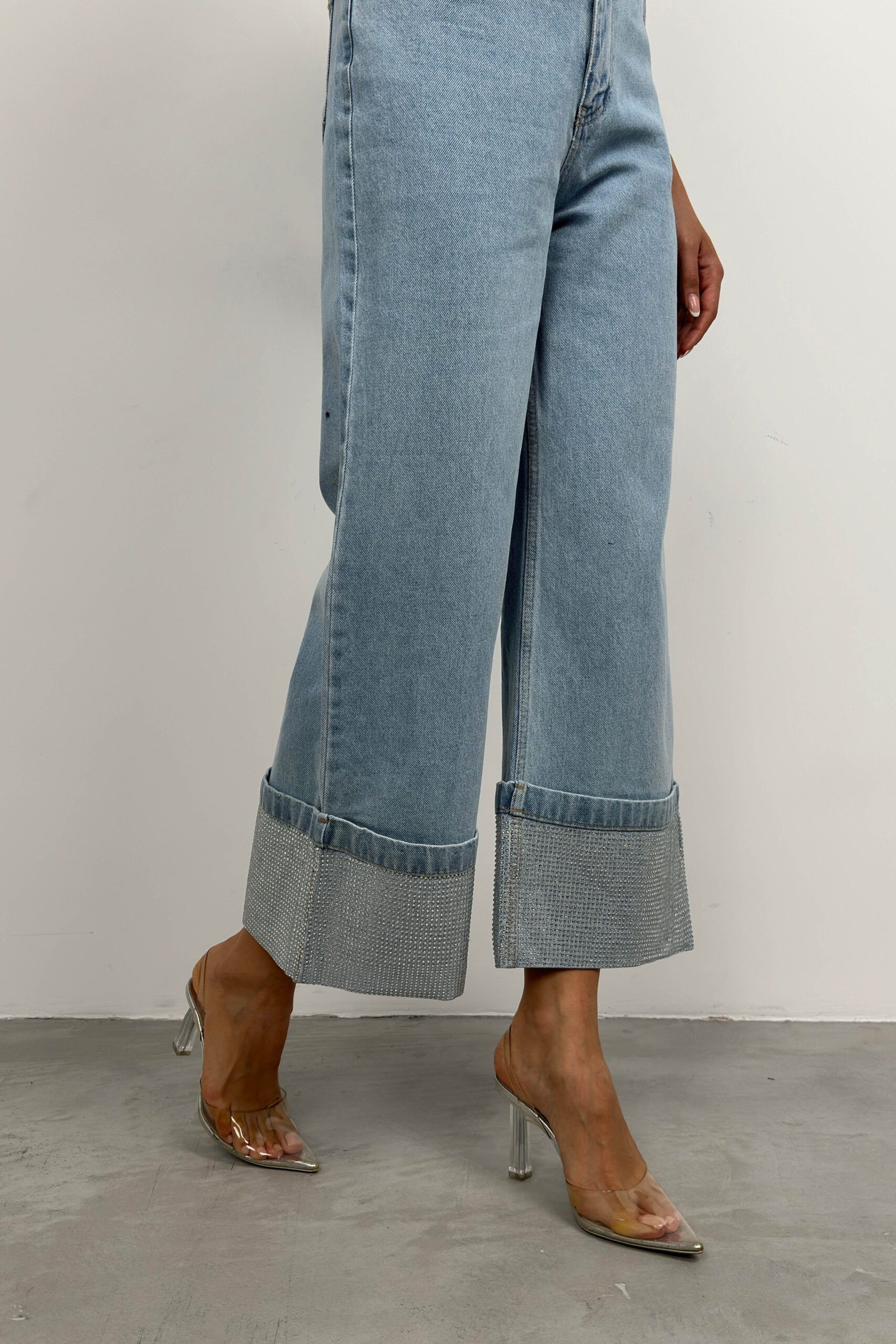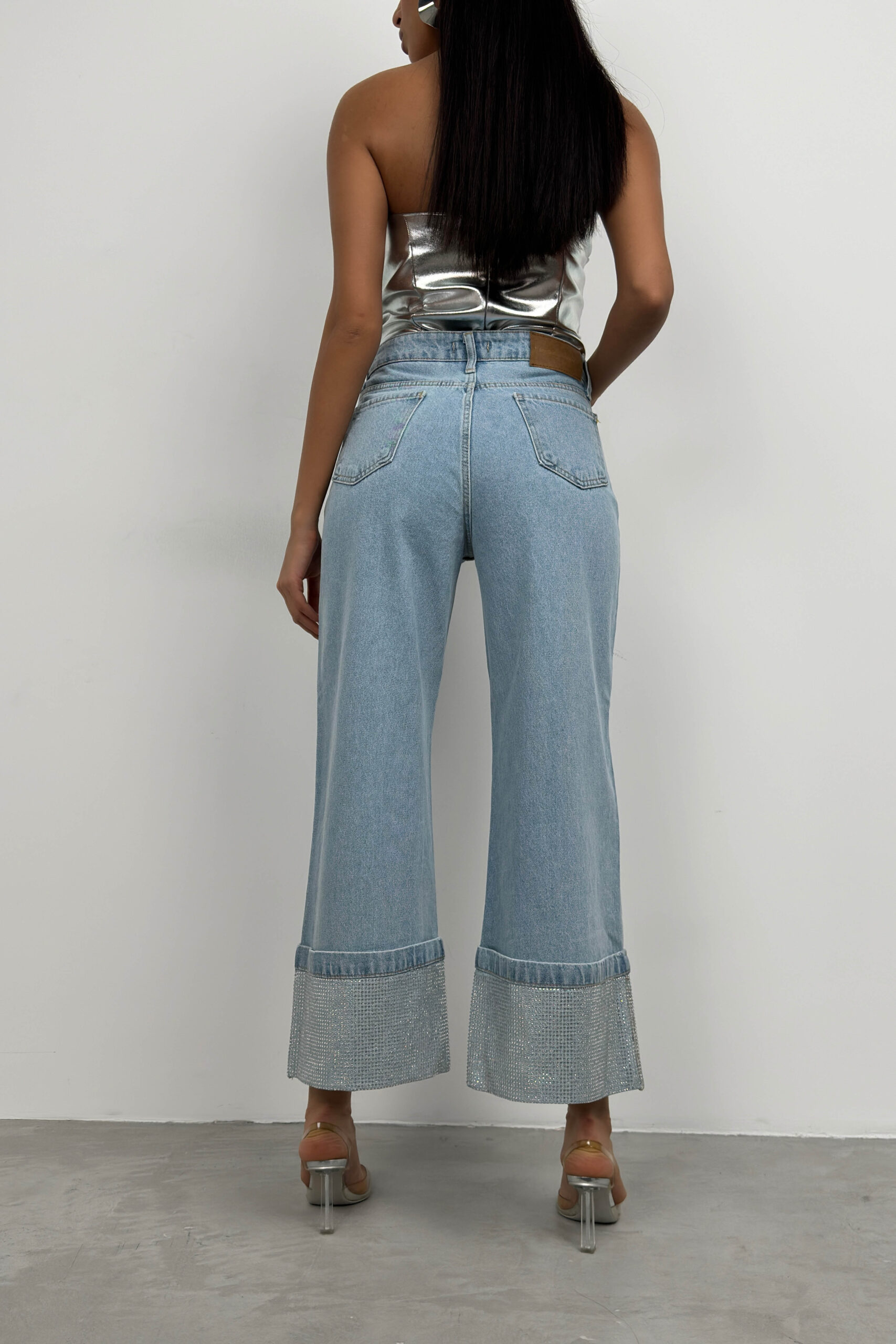 Paça Taş Detay Mavi Jean