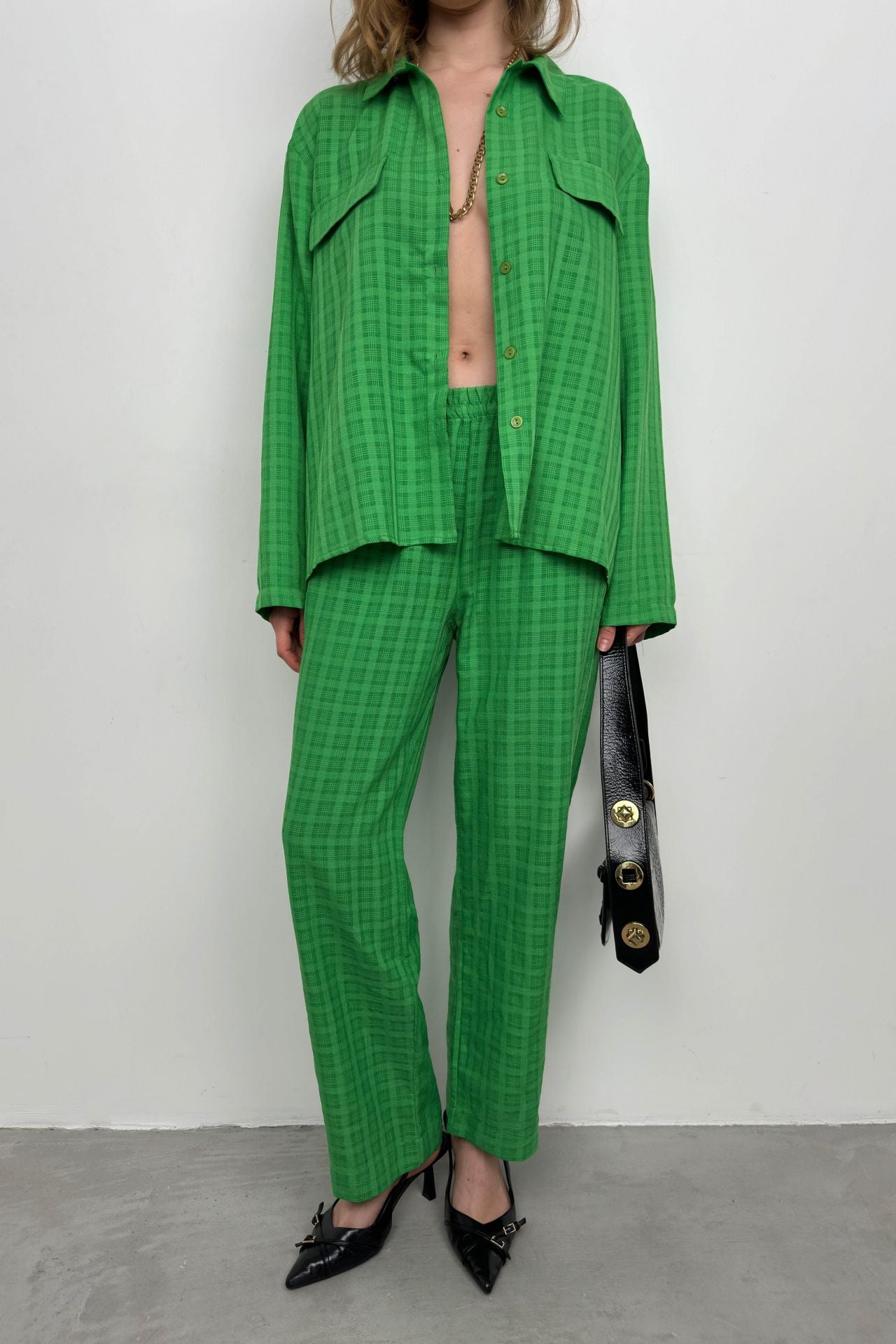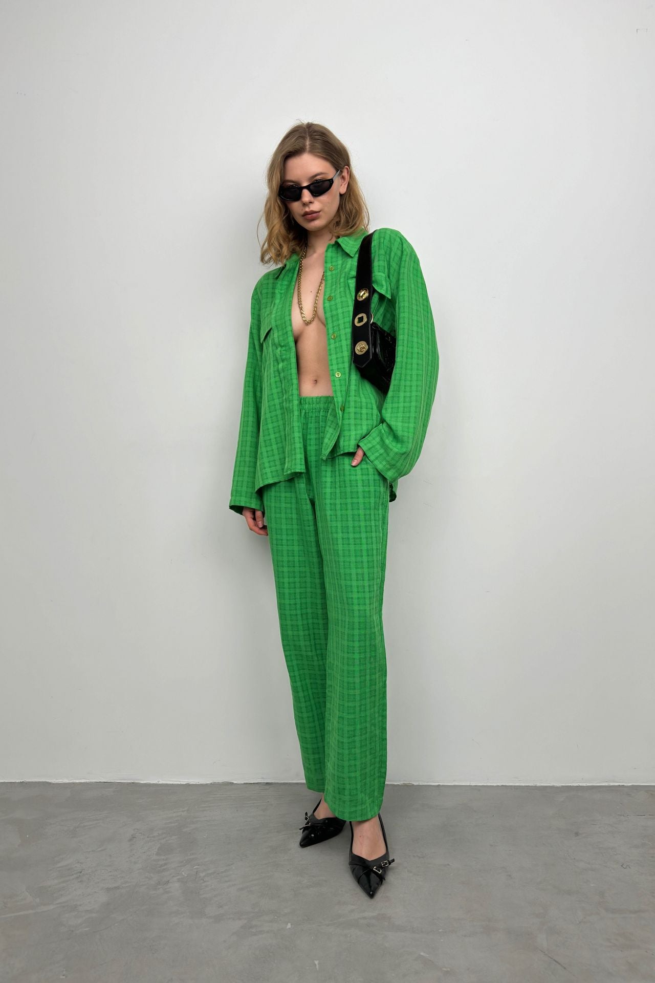 Pantallona me këmishë jeshile Set të dyfishtë me xhepa