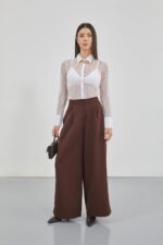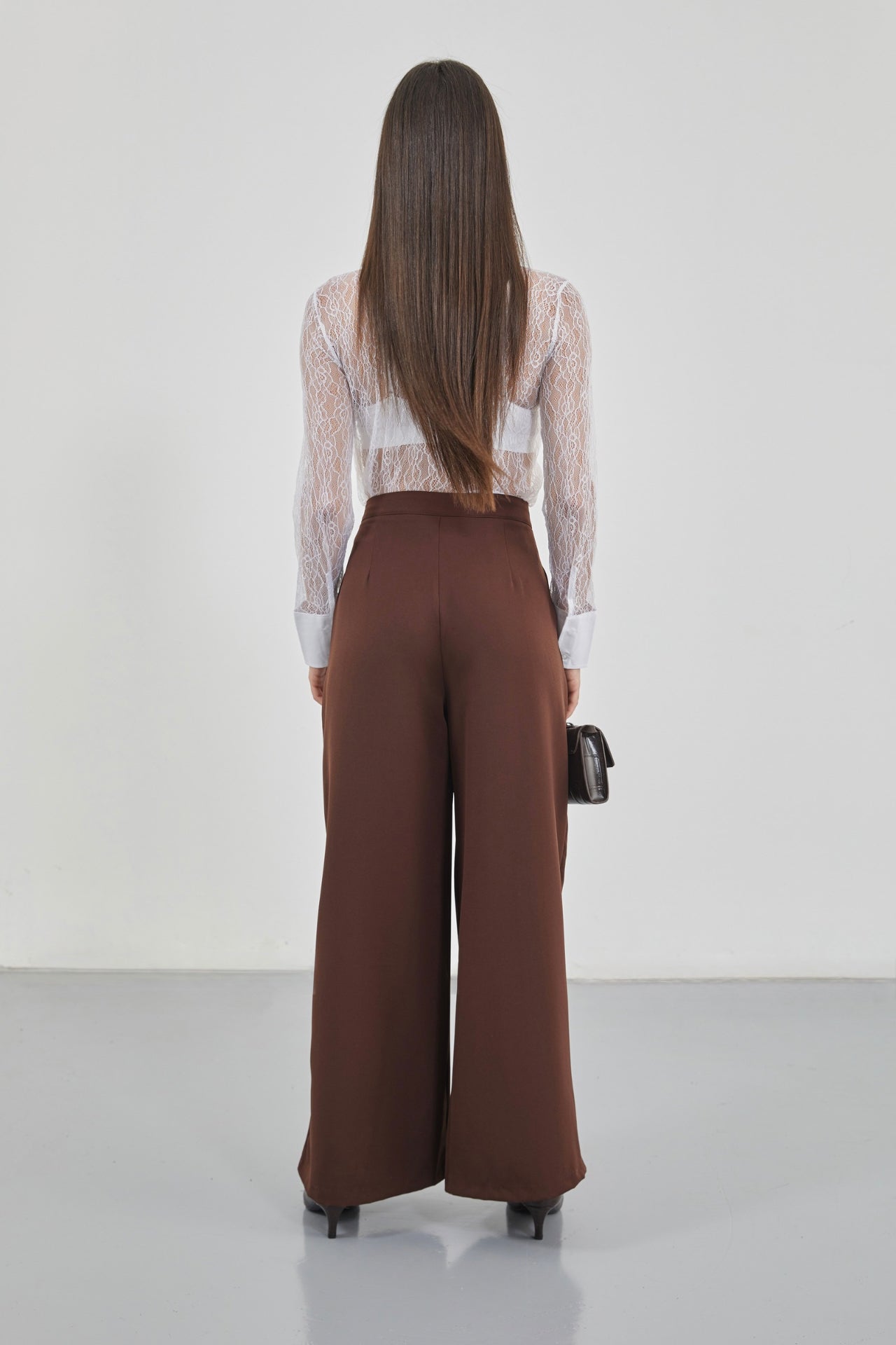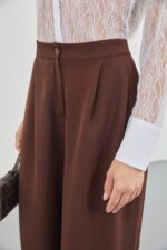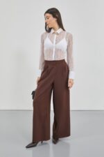 Pantallona palazzo me kopsa, xhep të dyfishtë, bel të lartë Modeli i modelit: Gjoks: 80 cm Beli: 59 cm Ijet: 86 cm Lartësia e modelit: 173 cm Pesha: 51 kg Është madhësia S në manekin. Përmbajtja e produktit: 97 Polyester 3 Elastan Kodi i produktit: 52201041