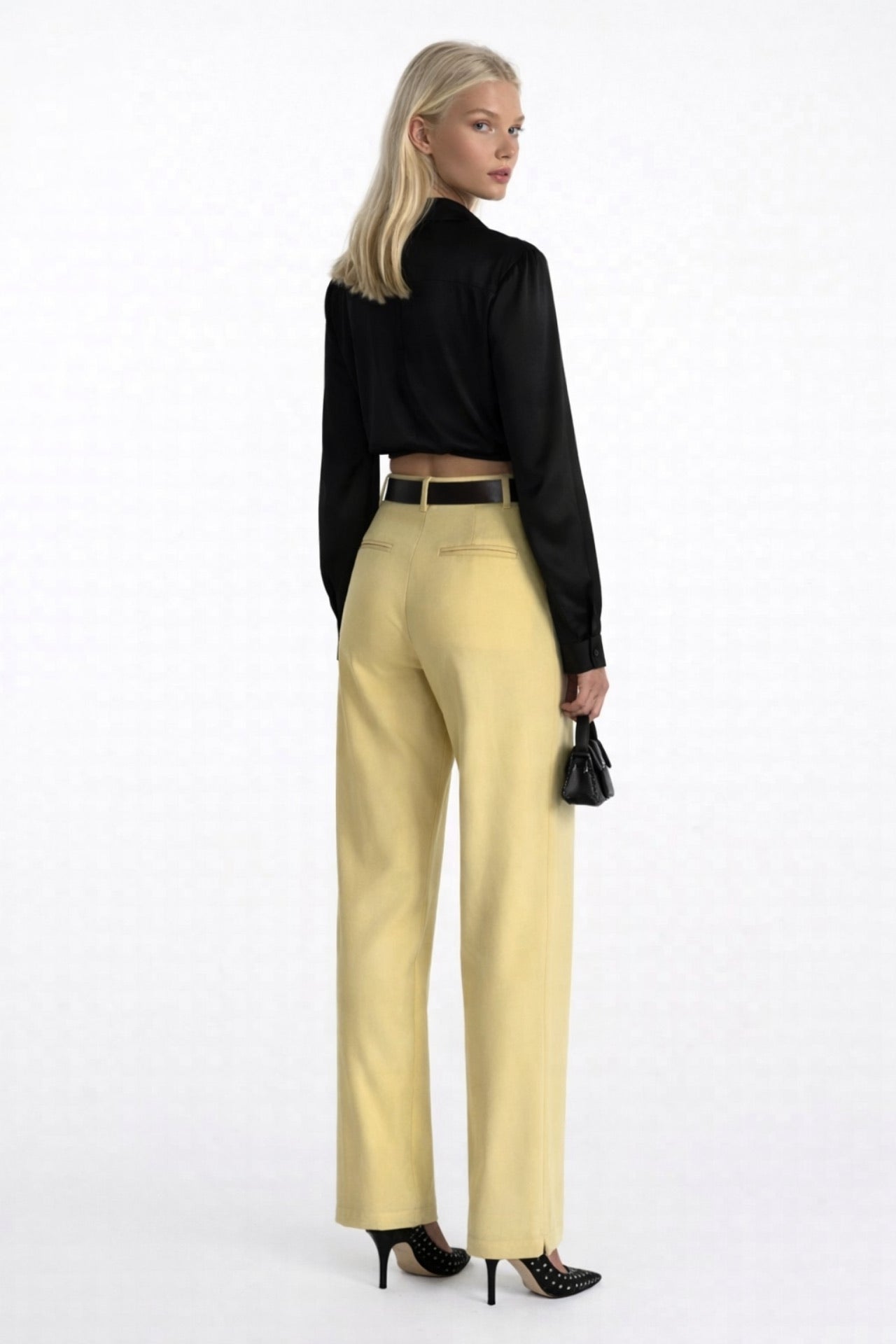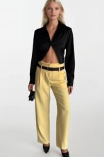 Pantallona të verdha me bel të lartë të detajit të rripit