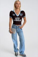 Dekolte, mëngë të shkurtra, bluzë trikotazhe Slim Fit, paragjykimi i gjoksit Modeli i detajuar Dimensionet: Gjoks: 85 cm Beli: 62