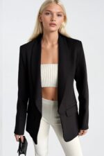 Şal Yaka Astarlı Siyah Blazer Ceket