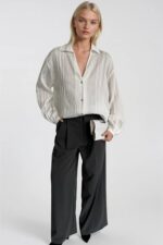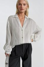 Şerit Detay Beyaz Modal Gömlek