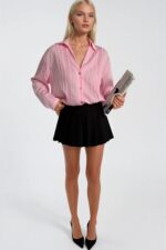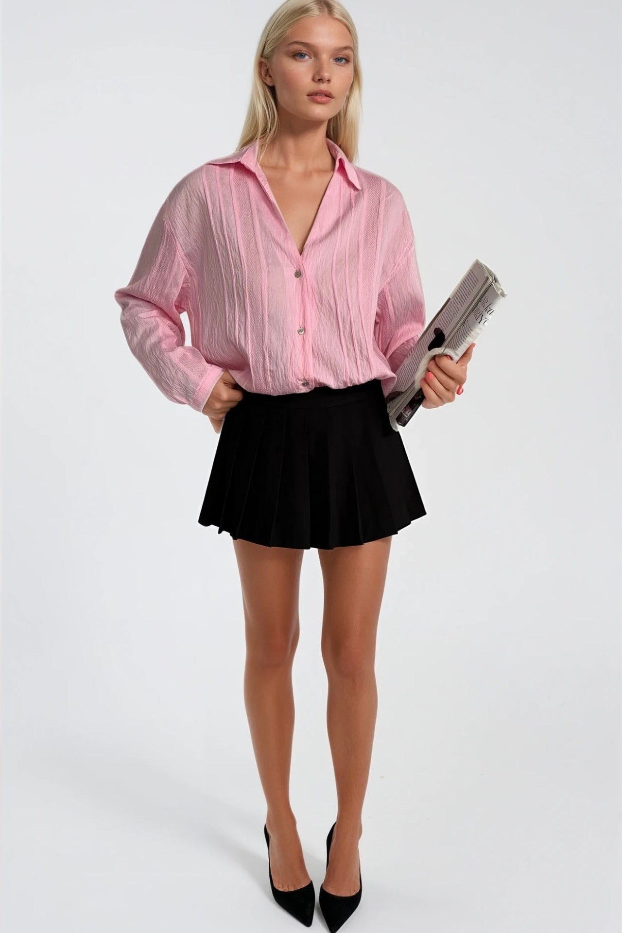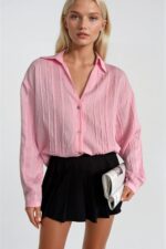 Prerje ovale, jakë këmishë, mëngë të gjata, këmishë Ultra Crop Modeli i modelit: Gjoks: 85 cm Beli: 58 cm Ijet: