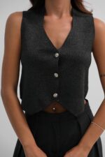 Simli Triko Gri Yelek