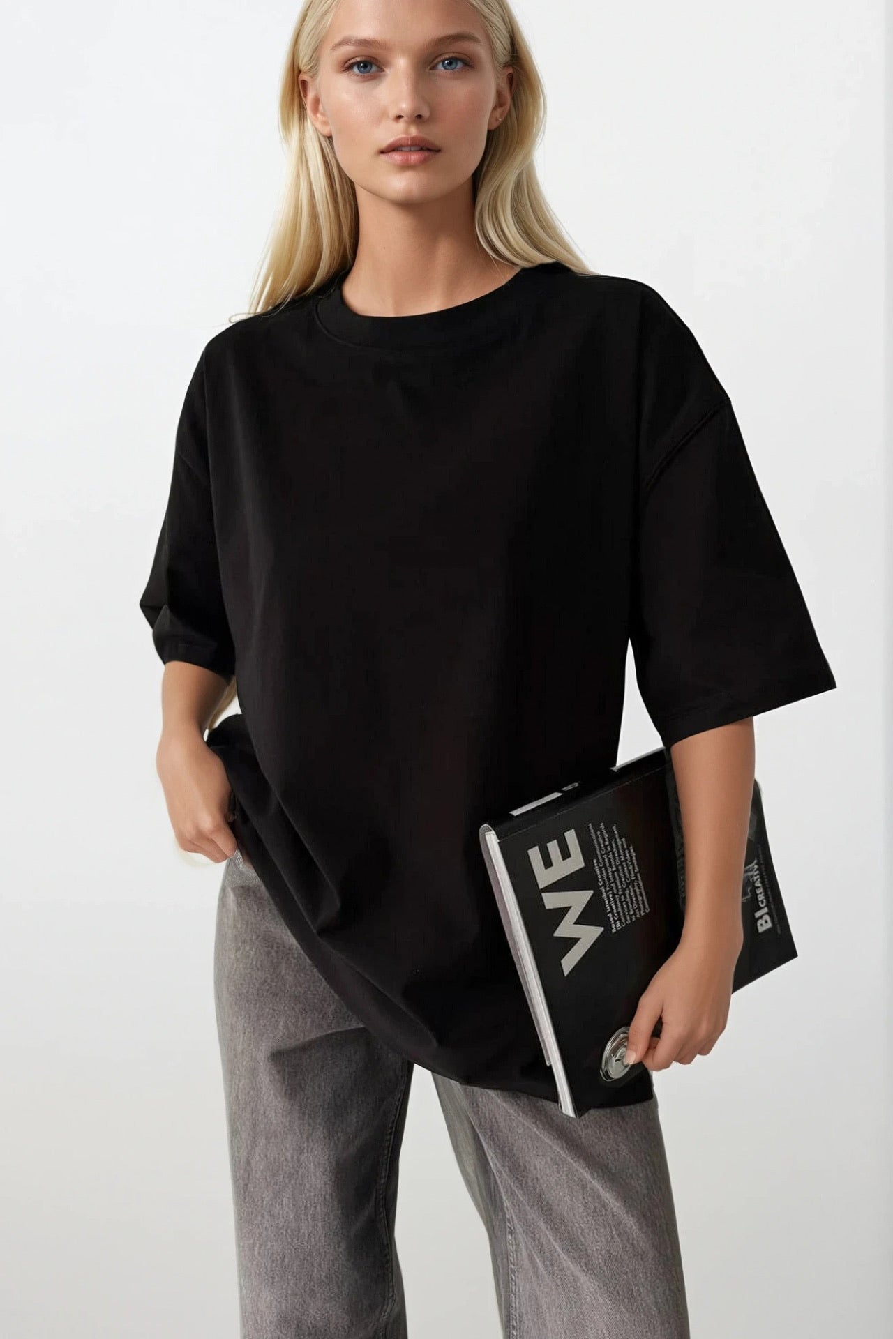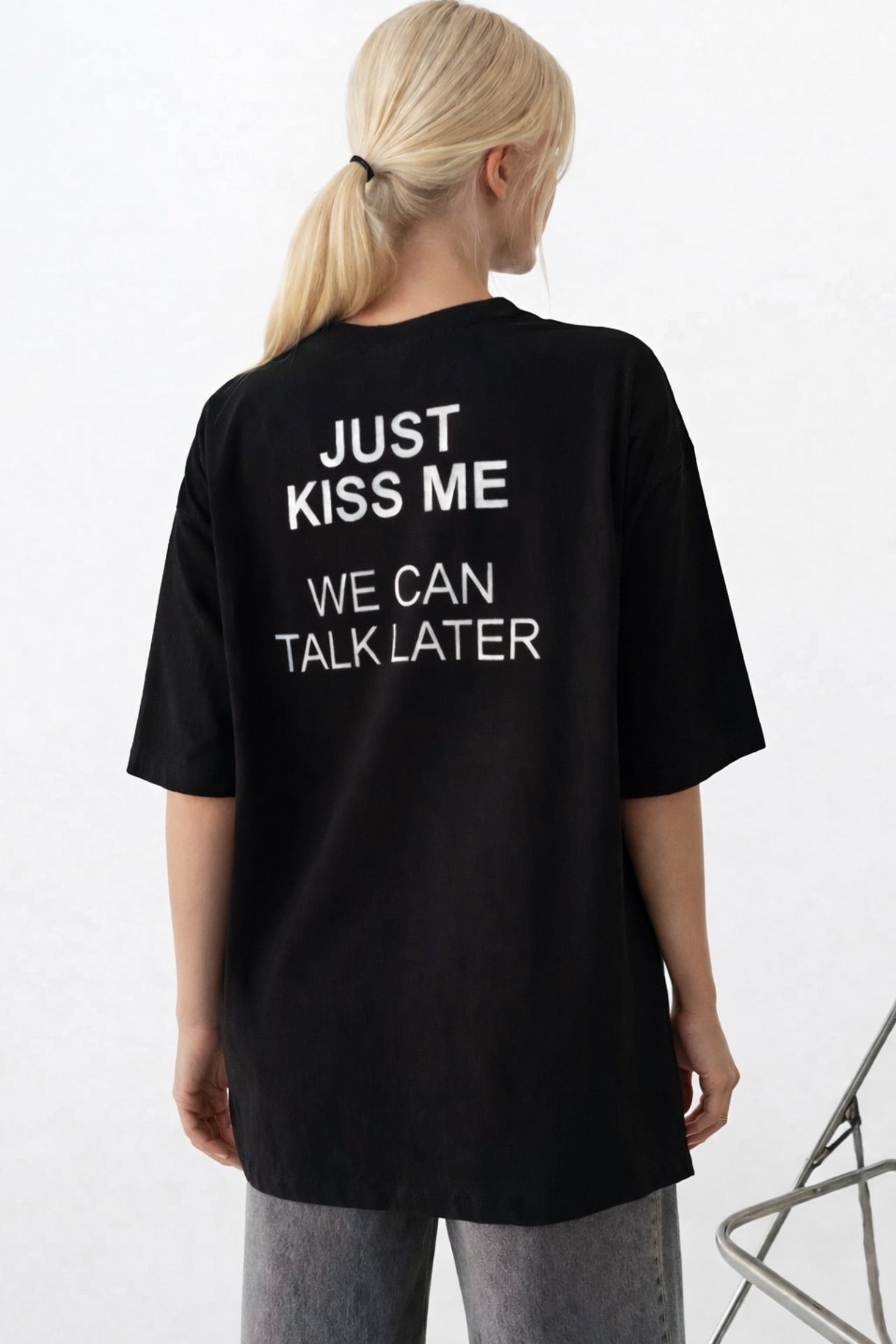 Sırt Baskılı Oversize Siyah T-Shirt