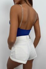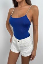 Taş Askılı Saks Bodysuit