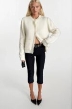 Tek Cepli Çıtçıtlı Ekru Triko Hırka