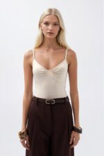 Bustier i prerë bezhë me prerje të ulët të hapur