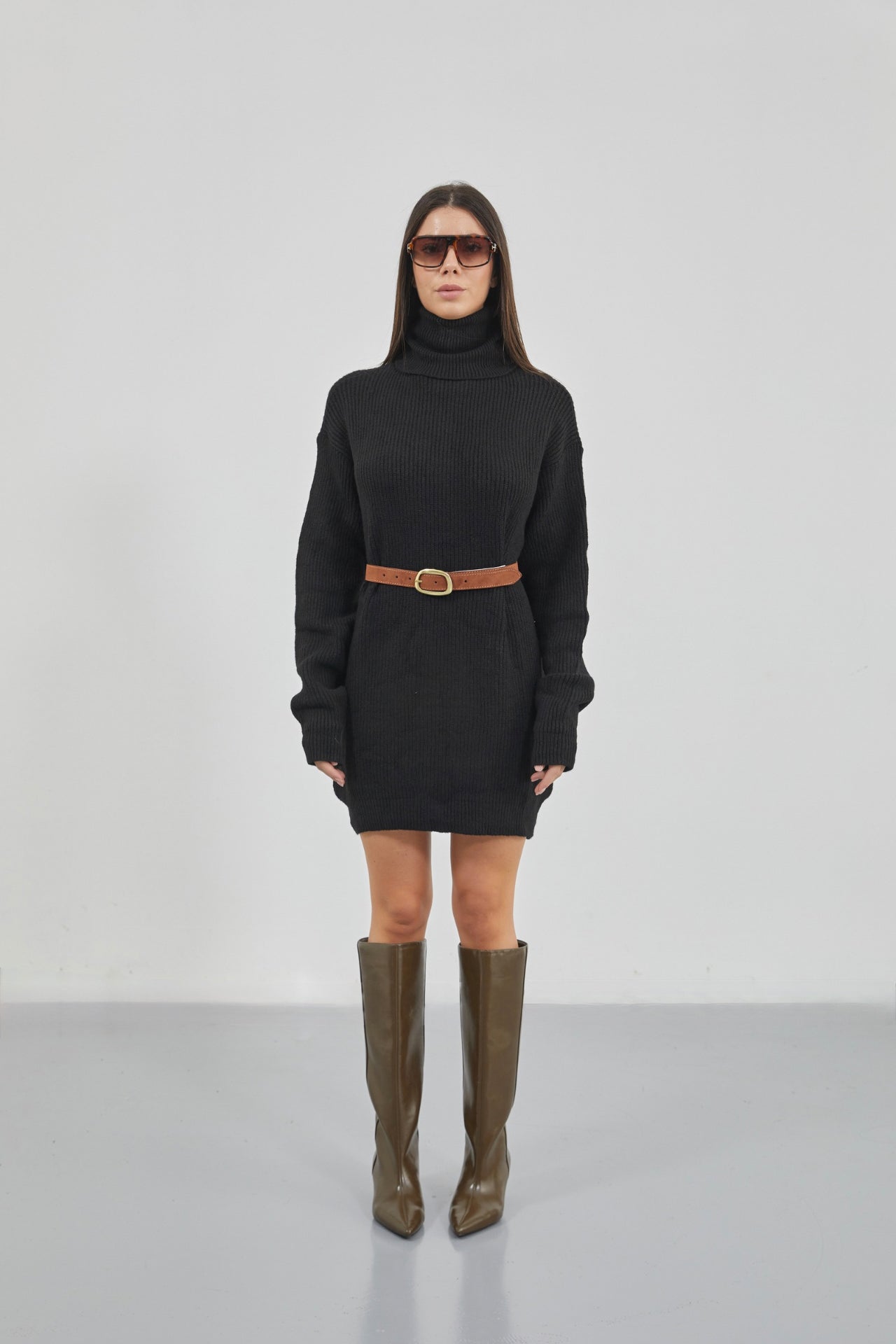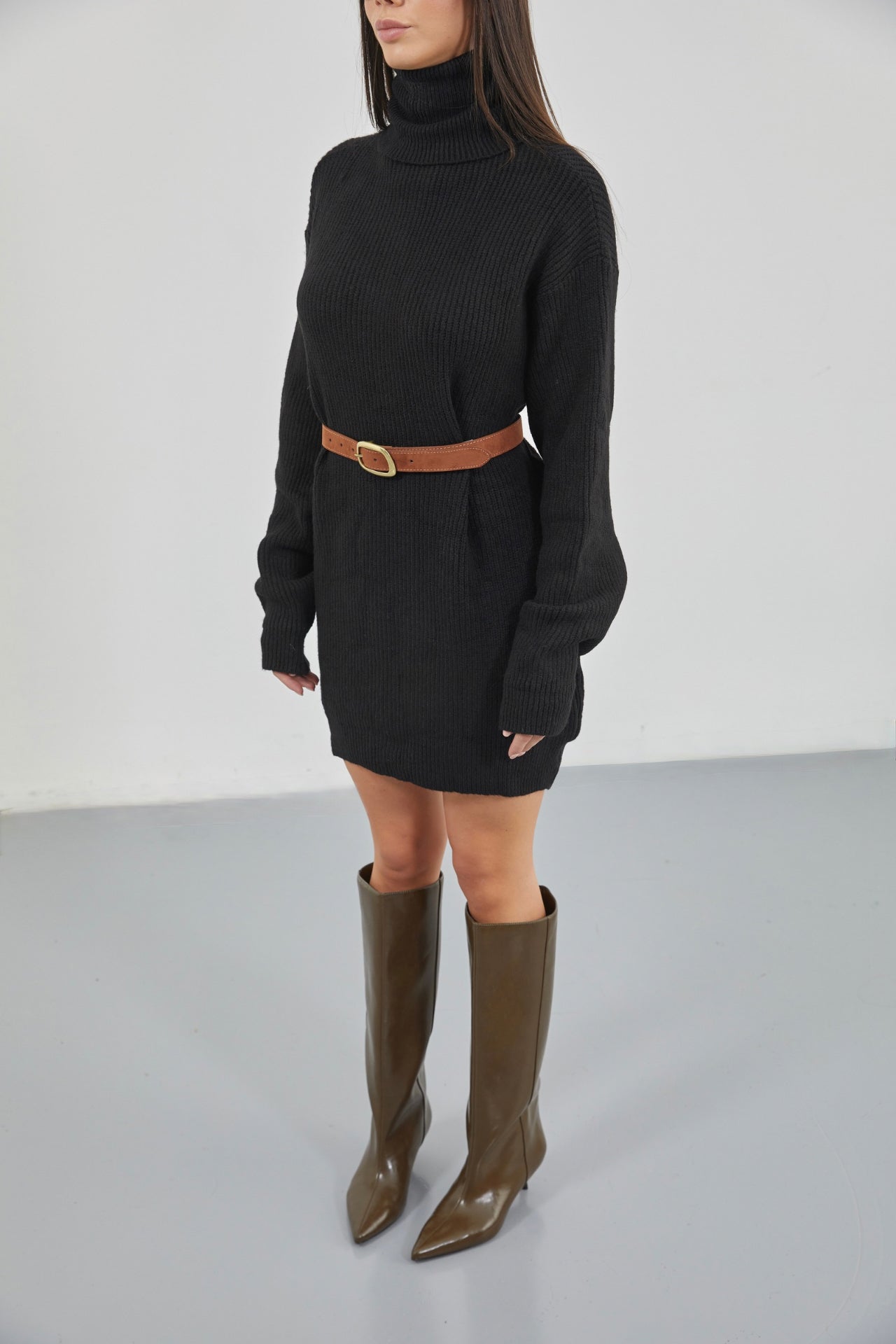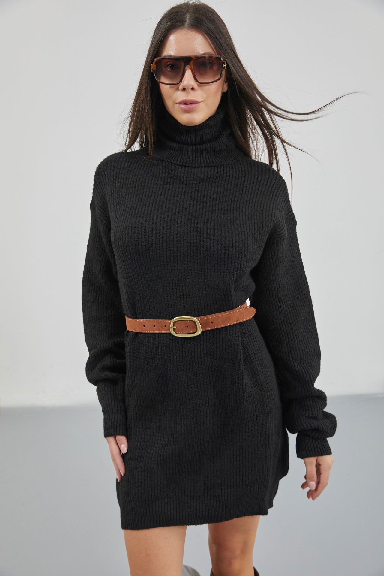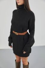 Tunika e thurur e zezë me jakë të madhe