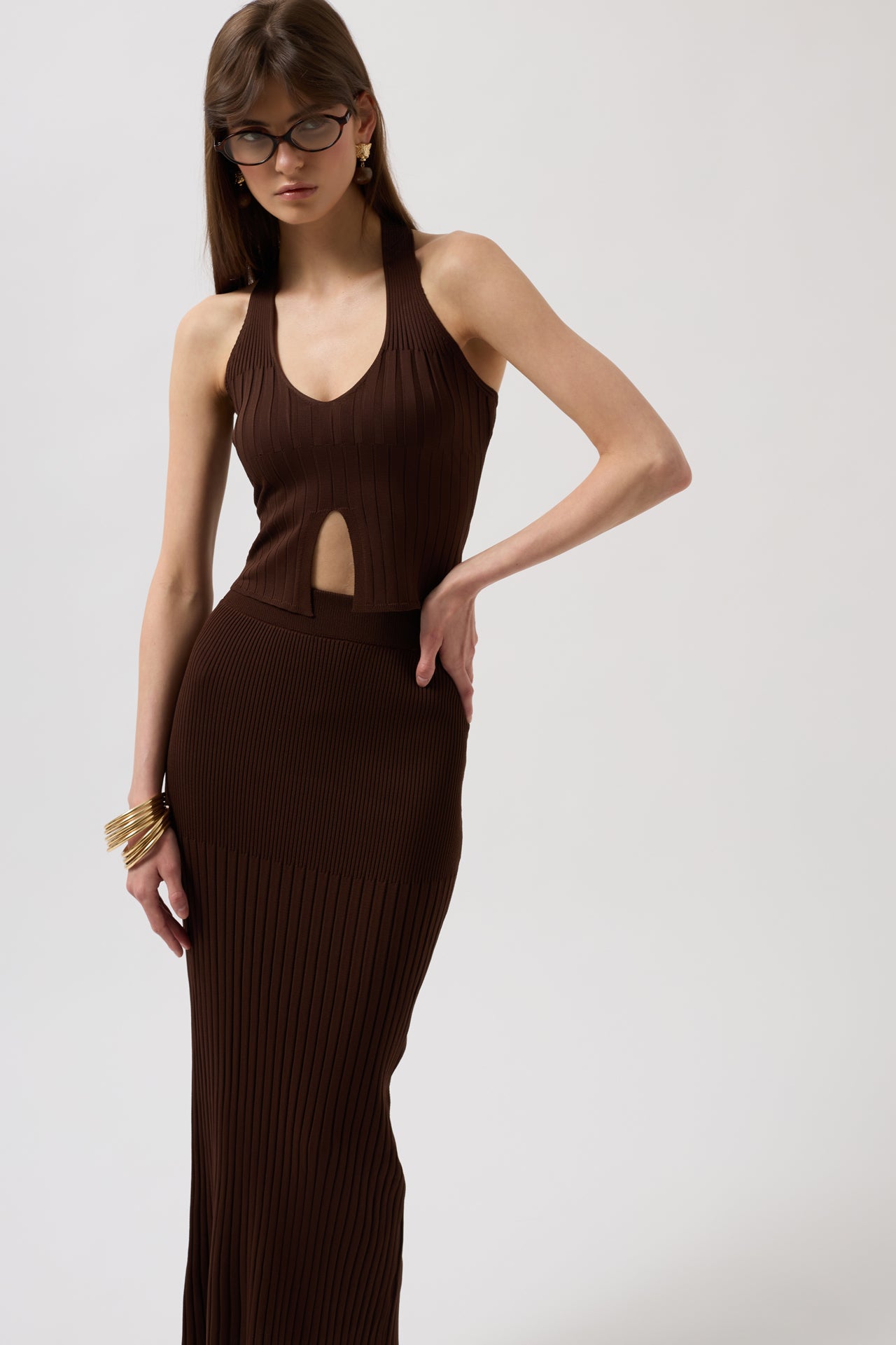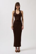 Rripi, Slim Fit, V-Neck, Crop, Bustier dhe Squat, Maxi Length, Ngjitje në trup, Fundi Set Model Dimensionet: Gjoks: 85 cm
