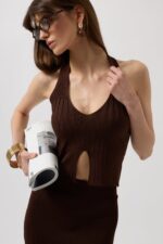 Detajet e dritares, dekolte halter, mëngë zero, notar, manekin i trupit Dimensionet: Gjoks: 89 cm Beli: 68 cm Ijet: 95