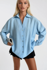 V Yaka Oversize Mavi Modal Gömlek