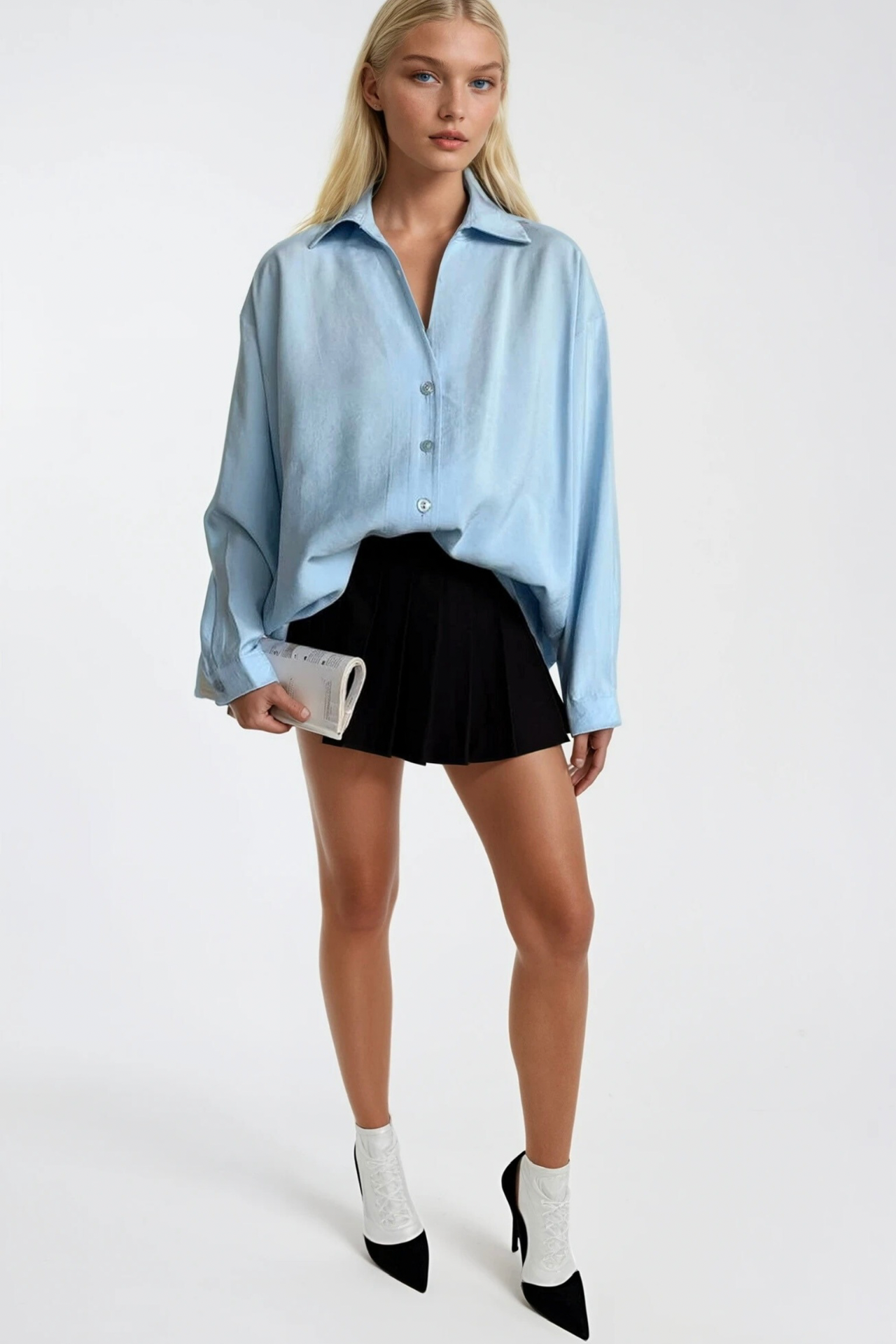 Sakinliğin ve Zarafetin RengiMavinin dingin özgüveniyle modal kumaşın ipeksi hafifliğini bir araya getiren bu gömlek, gündelik şıklığı yeniden tanımlıyor. Oversize kesimi ile rahat bir silüet sunarken V yaka detayı görünüme şık ve dengeli bir çerçeve çiziyor.Tasarım Detayları V yaka kesim — incelten ve şıklık katan detay Oversize fit — rahat, özgür ve modern bir silüet %100 Modal kumaş — nefes alan, yumuşak ve hafif doku Soft mavi ton — sakin, özgüvenli ve çok yönlü S, M ve L beden seçeneği Nasıl Kombinlenir?Beyaz ya da krem rengi pantolon ile aydınlık ve ferah bir görünüm elde edin; ya da lacivert veya gri tonlarıyla ton üstüne ton bir kombinasyon deneyin. Modal kumaşın doğal düşüşü, mavinin sakinleştirici etkisiyle birleşerek her güne zahmetsiz bir şıklık katıyor.Ürün Kodu: 52118010