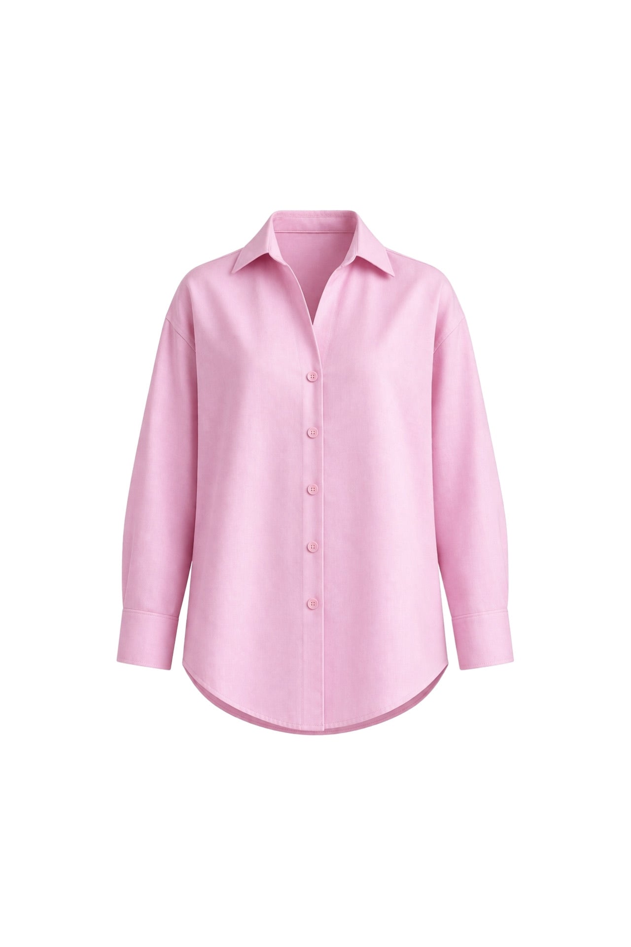 V Yaka Oversize Pembe Modal Gömlek