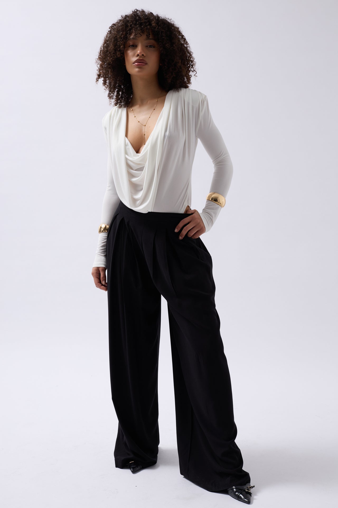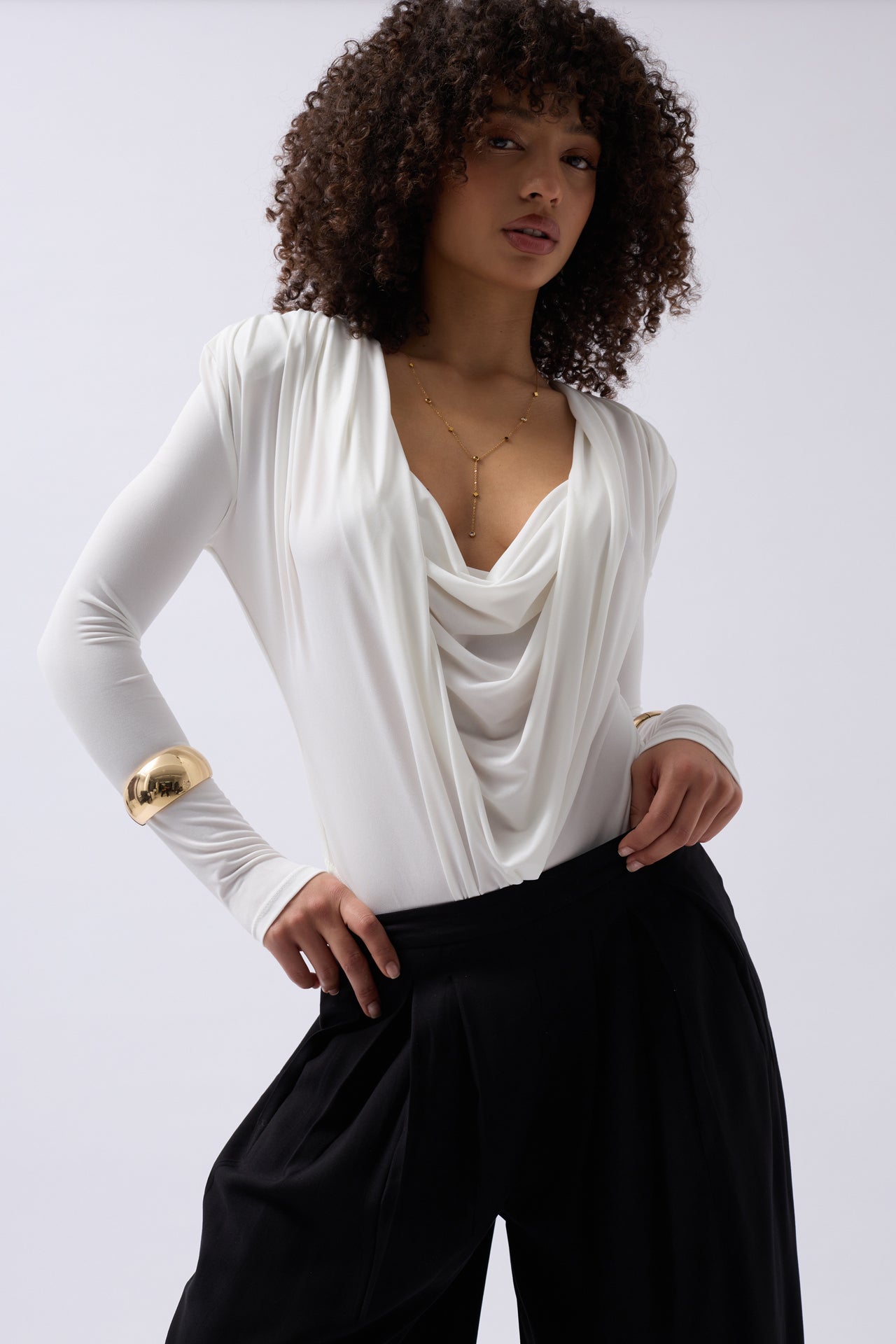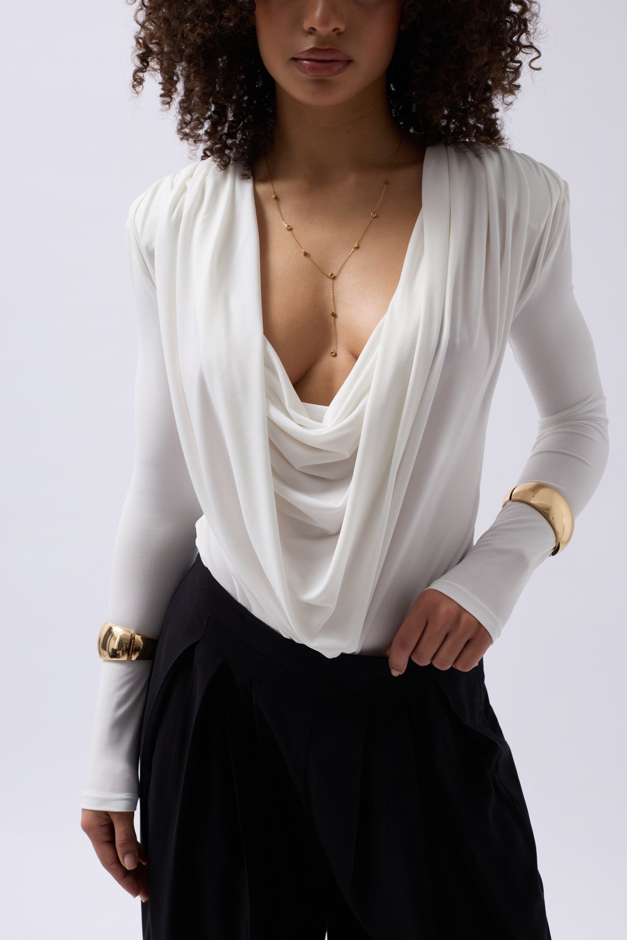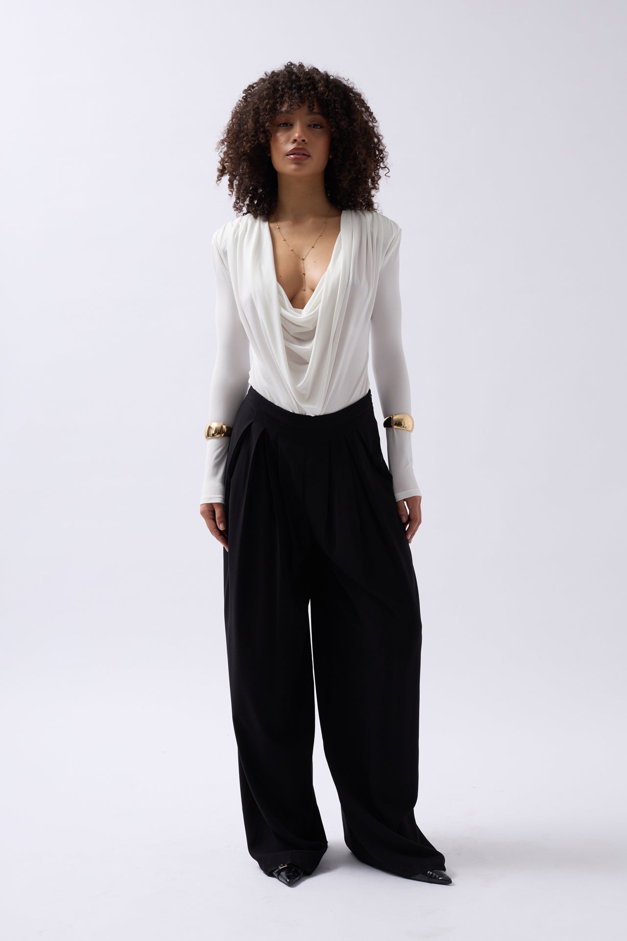 Vatkalı Degaje Yaka Beyaz Bodysuit