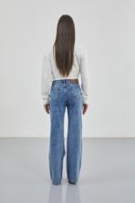 Pesë xhepa, zinxhir dhe butona, detaj printimi, bel i ulët Këmbë e gjerë xhinse Modeli i modelit: Busti: 79 cm Beli: 61 cm Ijet: 88 cm Lartësia e manekinit: 172 cm Pesha: 54 kg Është madhësia S në manekin. Përmbajtja e produktit: 100 pambuk Kodi i produktit: 52205013