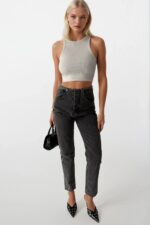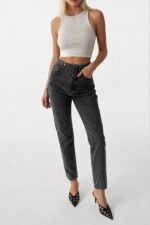 Xhinse gri pa rrip me bel të ulët