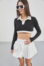 Bluzë e bardhë/e zezë me qafë ekuipazhi