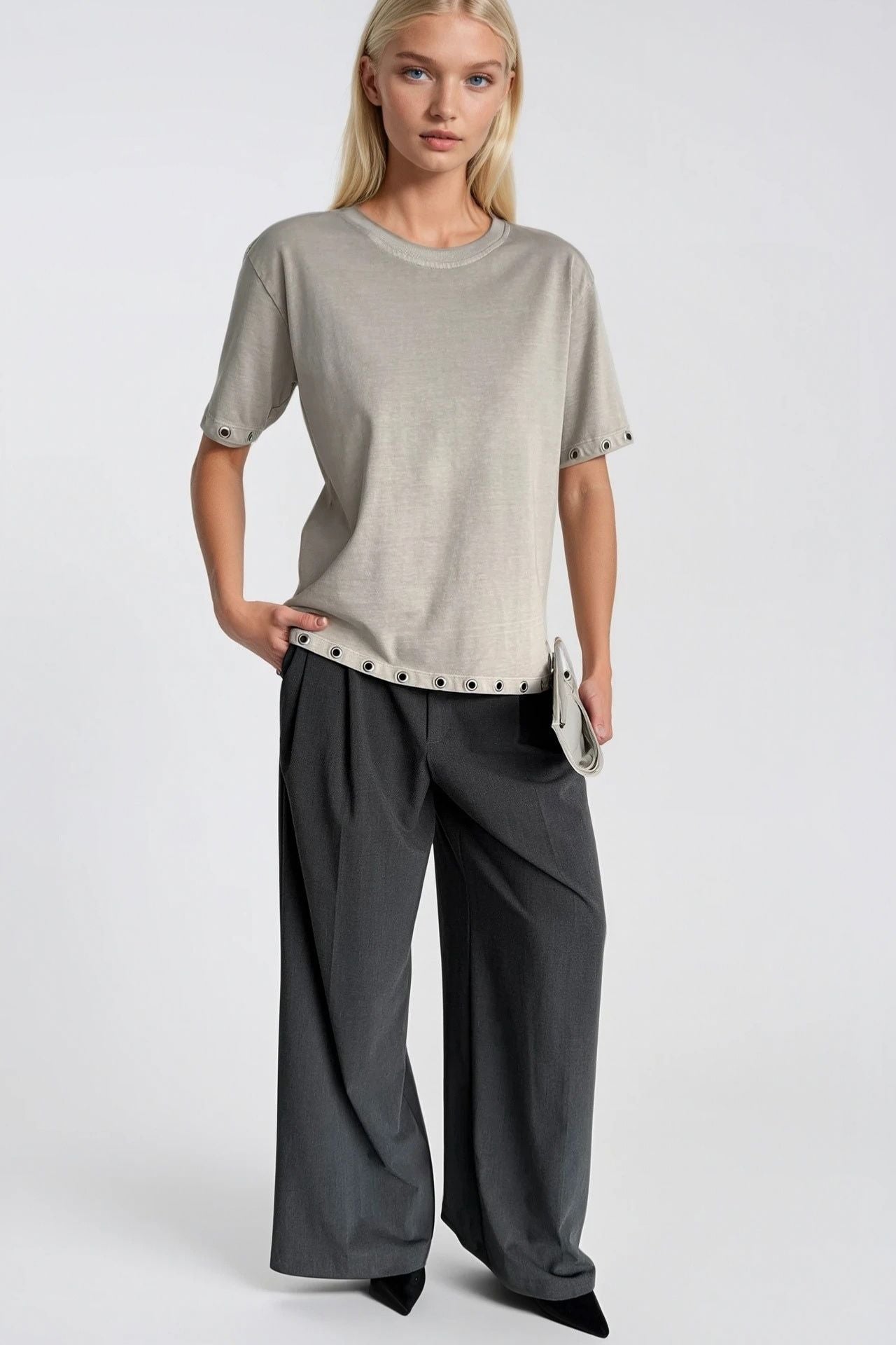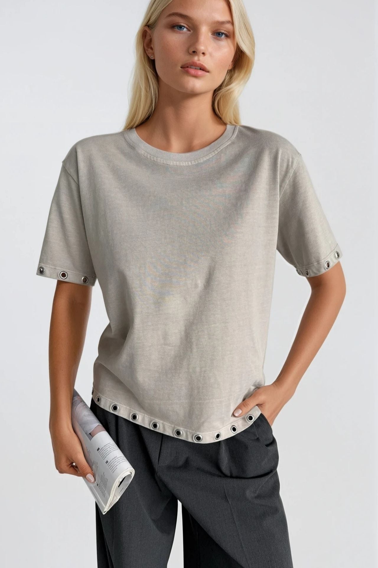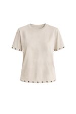 Yıkama Efektli Kuşgözü Detay Bej Tişört