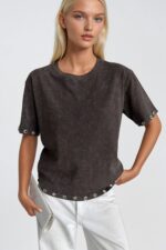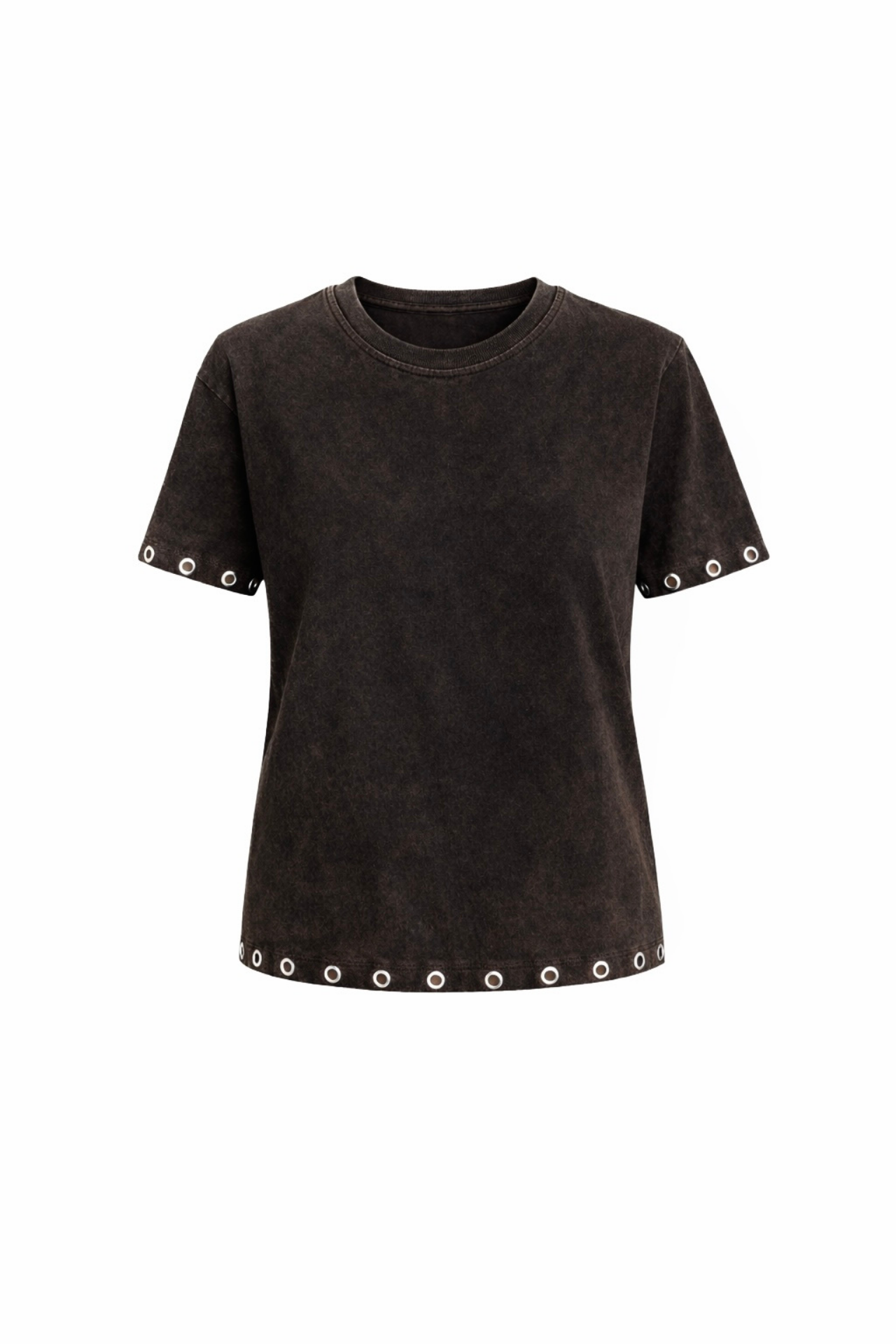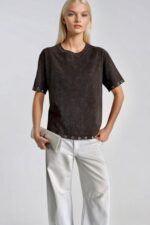 Yıkama Efektli Kuşgözü Detay Kahverengi Tişört