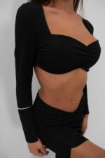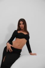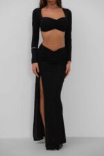 Yırtmaçlı Etek ve Crop Bluz Siyah Takım