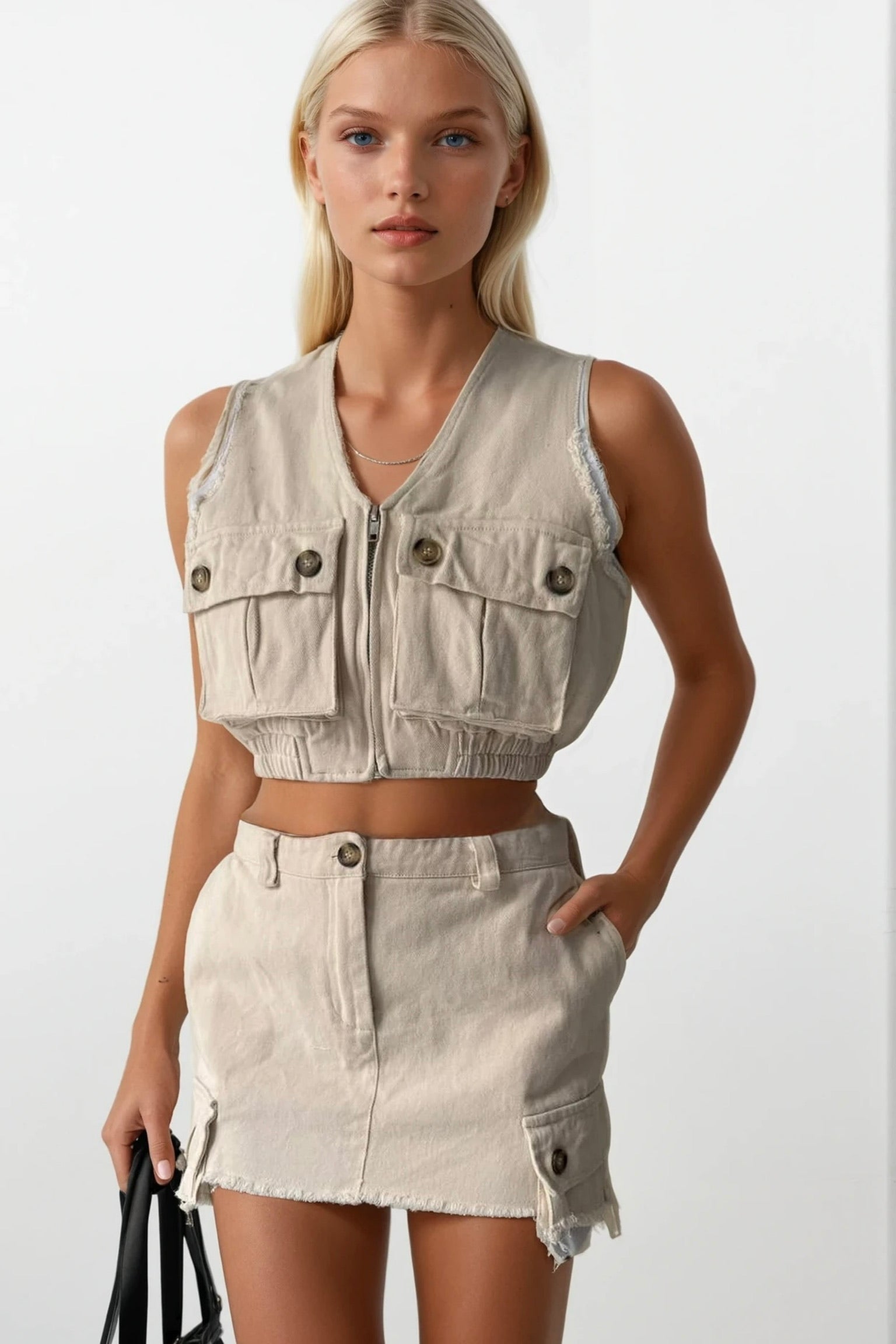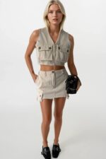 Püsküllenmiş Etek Ucu, Asimetrik Cepli, Düğmeli, Kargo Cepli Mini Etek Manken Ölçüleri : Göğüs : 85 cm Bel : 58 cm Basen : 90 cm Manken Boy : 174 cm Kilo : 59 kg Manken üzerindeki S bedendir. Ürün İçeriği : 100 Pamuk Ürün Kodu : 24S02062