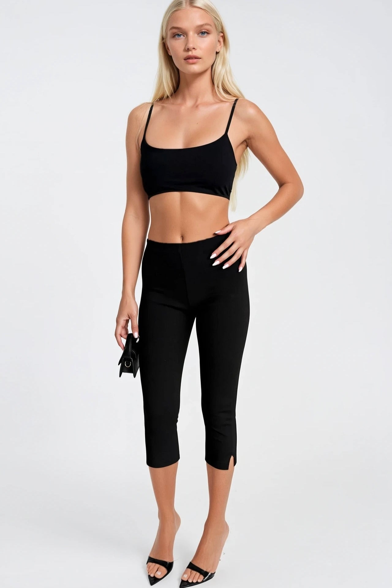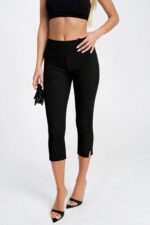 Yüksek Bel Likralı Siyah Bermuda Pantolon