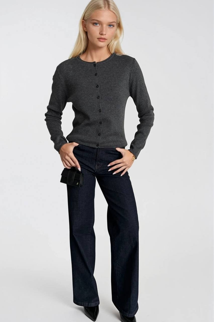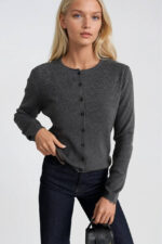 Yün Karışımlı Düğme Detay Antrasit Triko Bluz